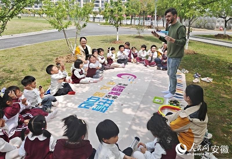 滁州外国语学校操场,外教带领孩子们上口语课。人民网记者 周坤摄